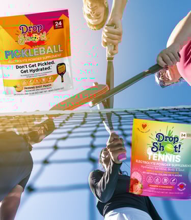 Introducing Drop Shot!, a healthy electrolyte hydration mix—crafted specifically for the tennis player. Loaded with an impressive 72 trace minerals and a powerful 435g of electrolytes, this mix ensures you stay hydrated and energized on the court. With 6 essential vitamins, just 1g of sugar, and a blend of vitamins and antioxidants, it offers a health-conscious choice for tennis athletes. Plus, it's low calorie and sport certified, making it the perfect companion to fuel your game with vitality and endurance.